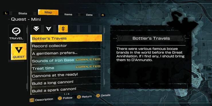 Mini Quests seperti pencapaian permainan. Misalnya, ada misi mini yang dapat Anda selesaikan untuk menemukan harta karun di reruntuhan, mengumpulkan catatan untuk jukebox, atau mendengarkan salah satu cerita D'Annunzio di bar. Pada gilirannya, memenuhi pencarian ini akan memberikan peningkatan pengalaman cepat yang secara signifikan akan mengurangi penggilingan level Anda.
